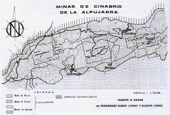 Es de final del siglo XIX de cuando se tiene ya información de una explotación más regular en la Alpujarra como es la referida por Gonzalo y Tarín en 1881, el cual recoge cómo en 1875 se trabajaba en las minas de Azogue “San José“ y “Tobas“ [Tobías] de Cástaras con 12 operarios, habiéndose extraído 600 toneladas de cinabrio, las cuales eran procesadas en la fábrica existente por aquel entonces en ese mismo municipio.