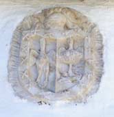 No podía faltar la mención al escudo que preside el dintel de la puerta grande