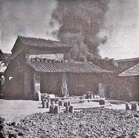 Los hornos de Sorbas son similares a los de Níjar (Lám. II, fig. 6). No se utilizan trébedes. La cámara interior está compartimentada por medio de pilares y humares (véase Fajalauza). En función de los caprichos de las llamas, los objetos salen del horno más o menos oscuros.